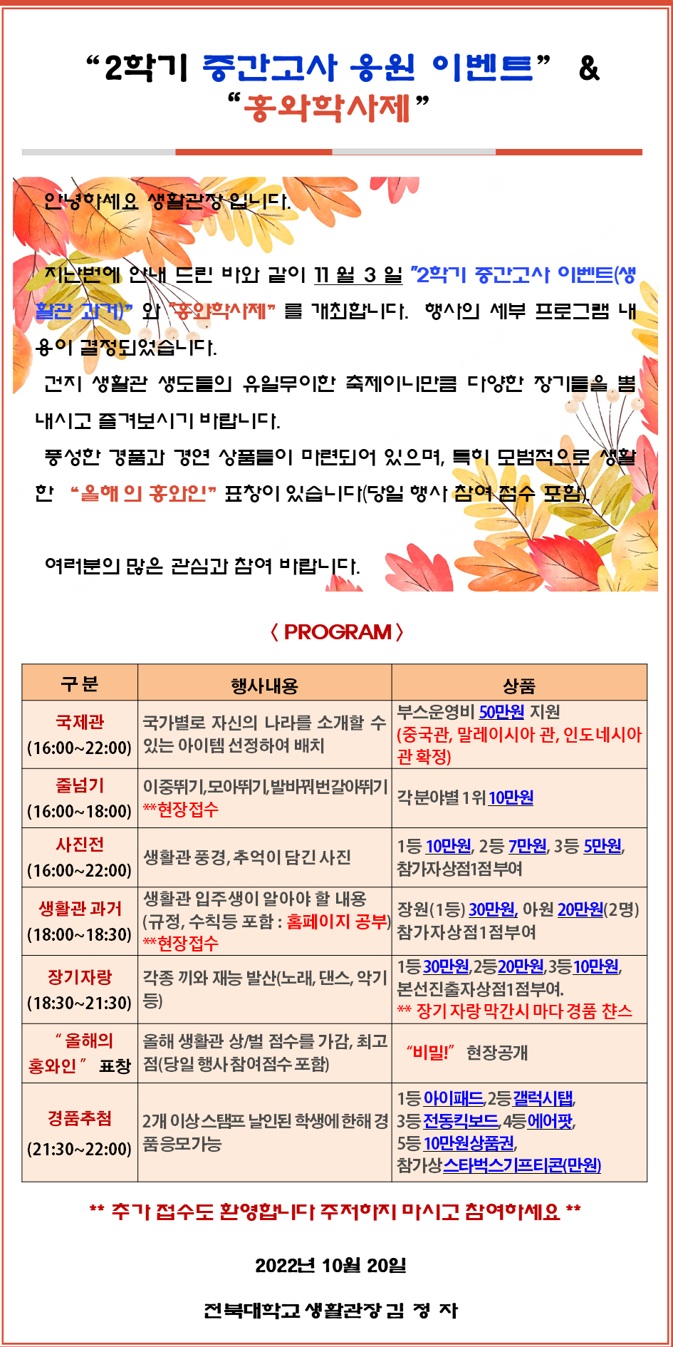 "2학기 중간고사 응원 이벤트" & "홍와학사제"(수정)