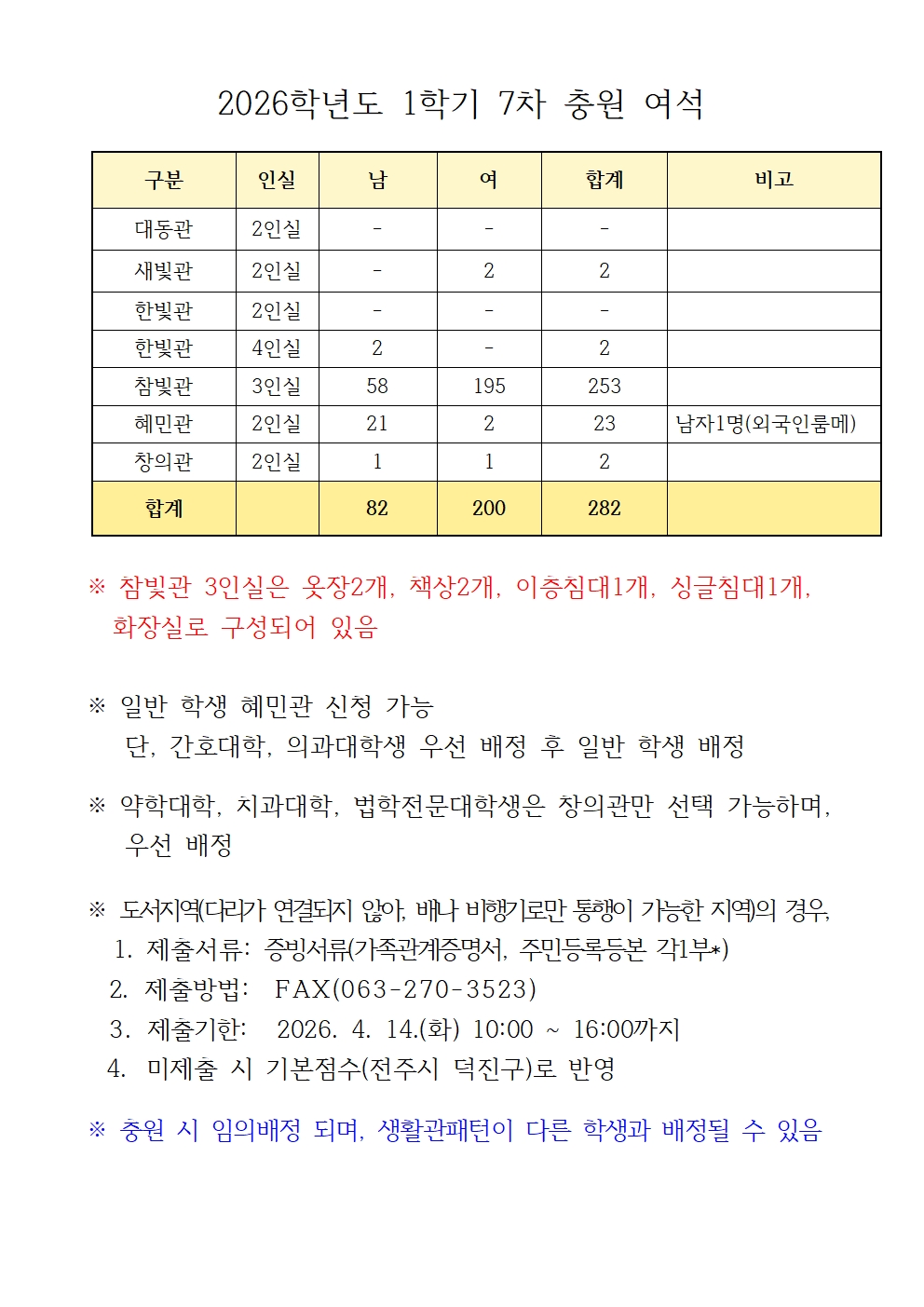 2026학년도 1학기 7차 충원 여석