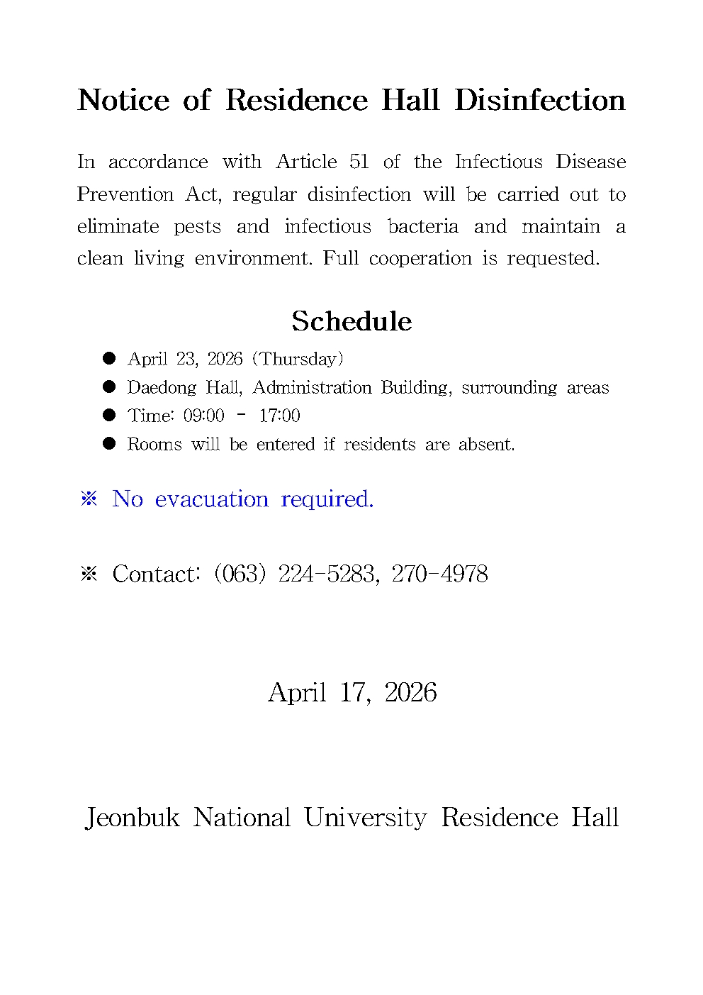 Copyright 2004-2026 Jeonbuk National University Residence Hall. All rights reserved.