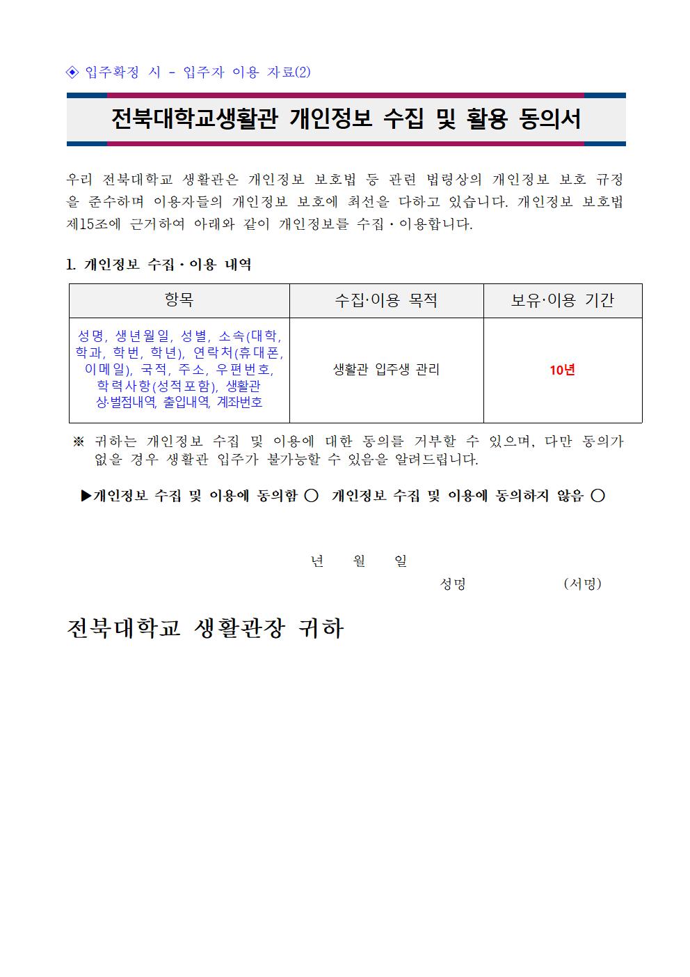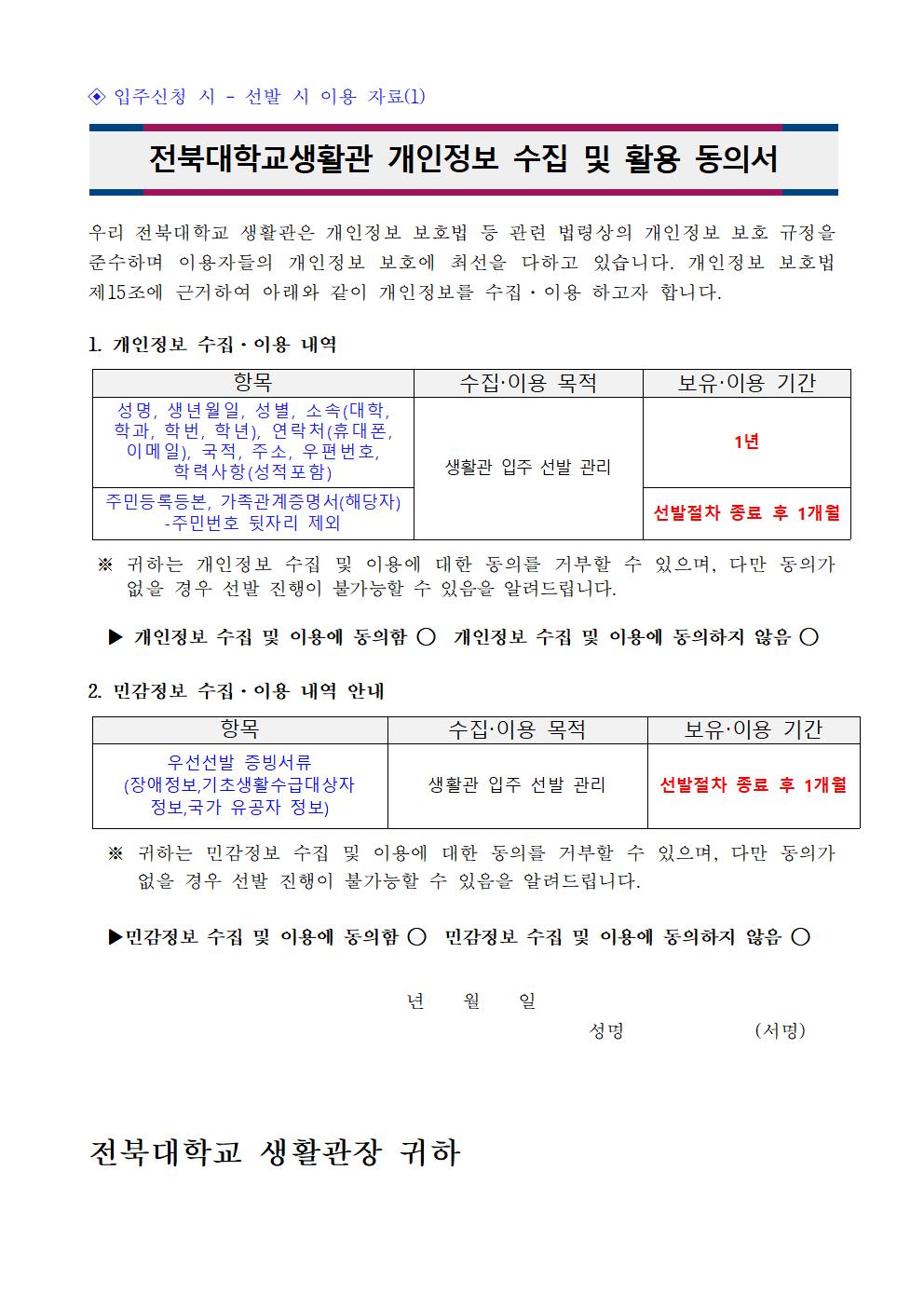 전북대학교생활관 개인정보 수집 및 활용 동의서(수정)