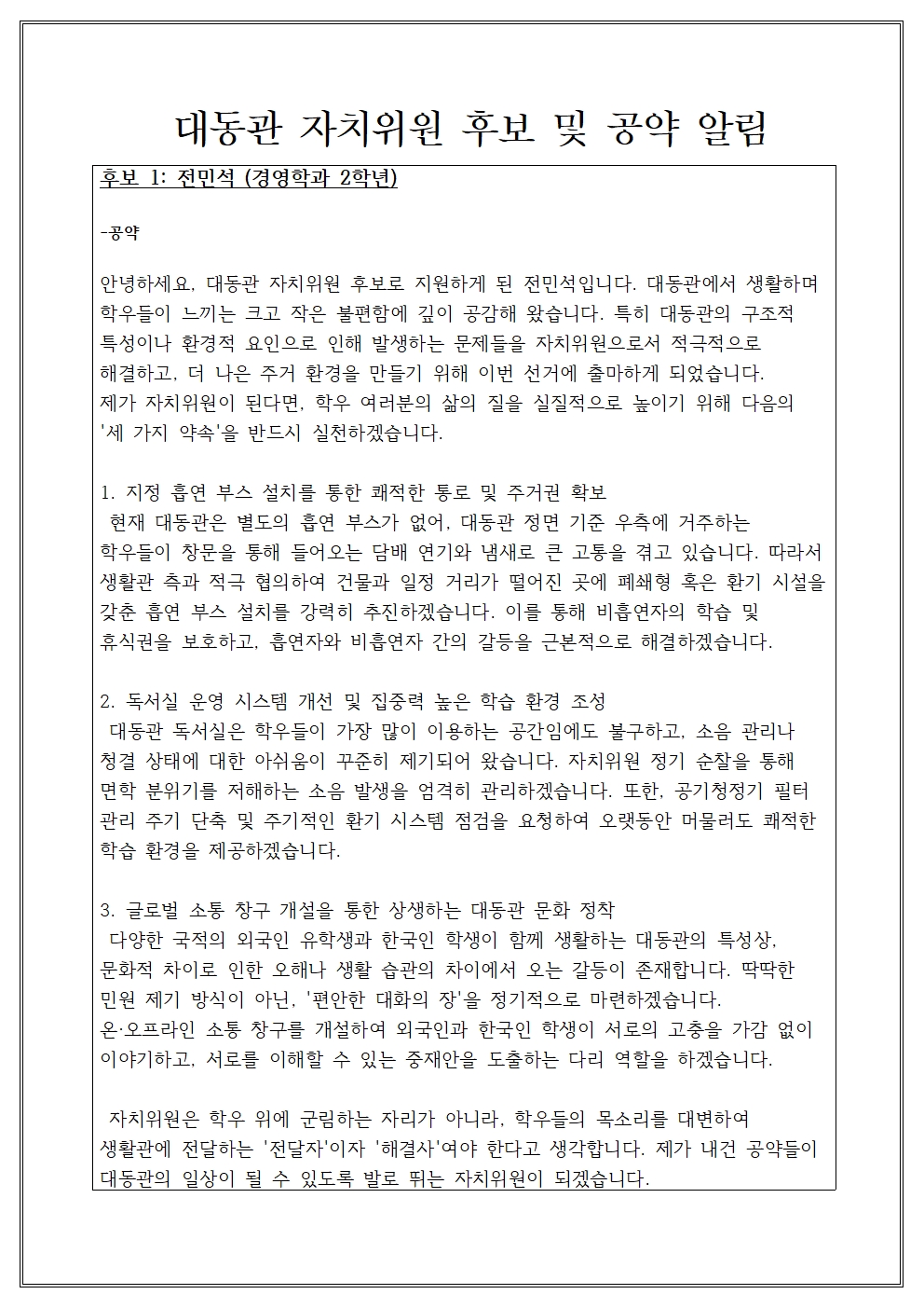 2026학년도 대동관 자치위원 후보 및 공약 알림