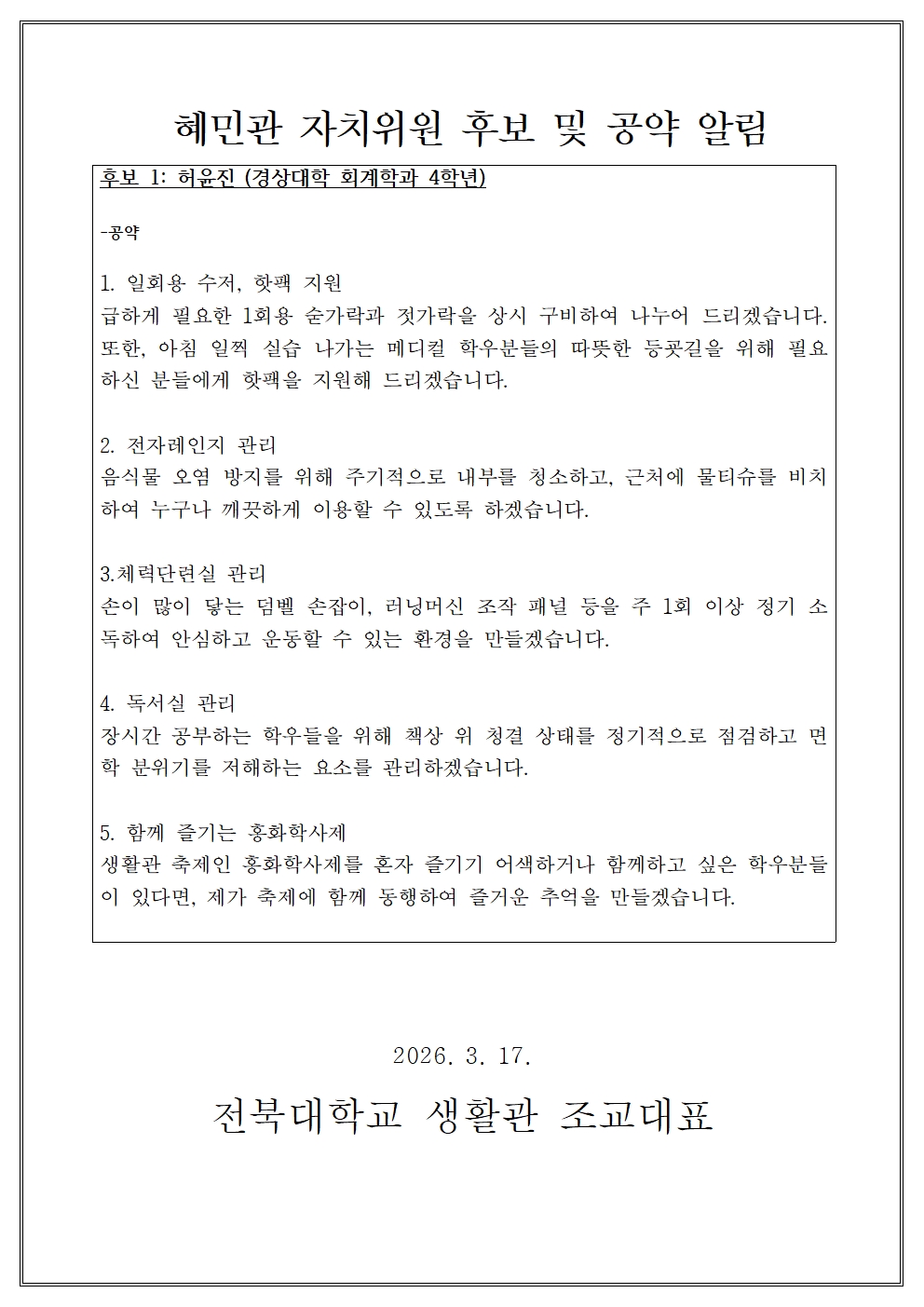 2026학년도 혜민관 자치위원 후보 및 공약 알림