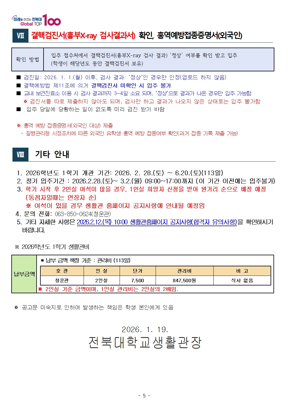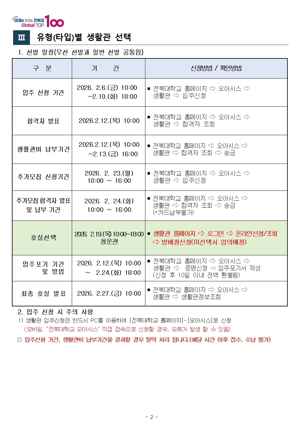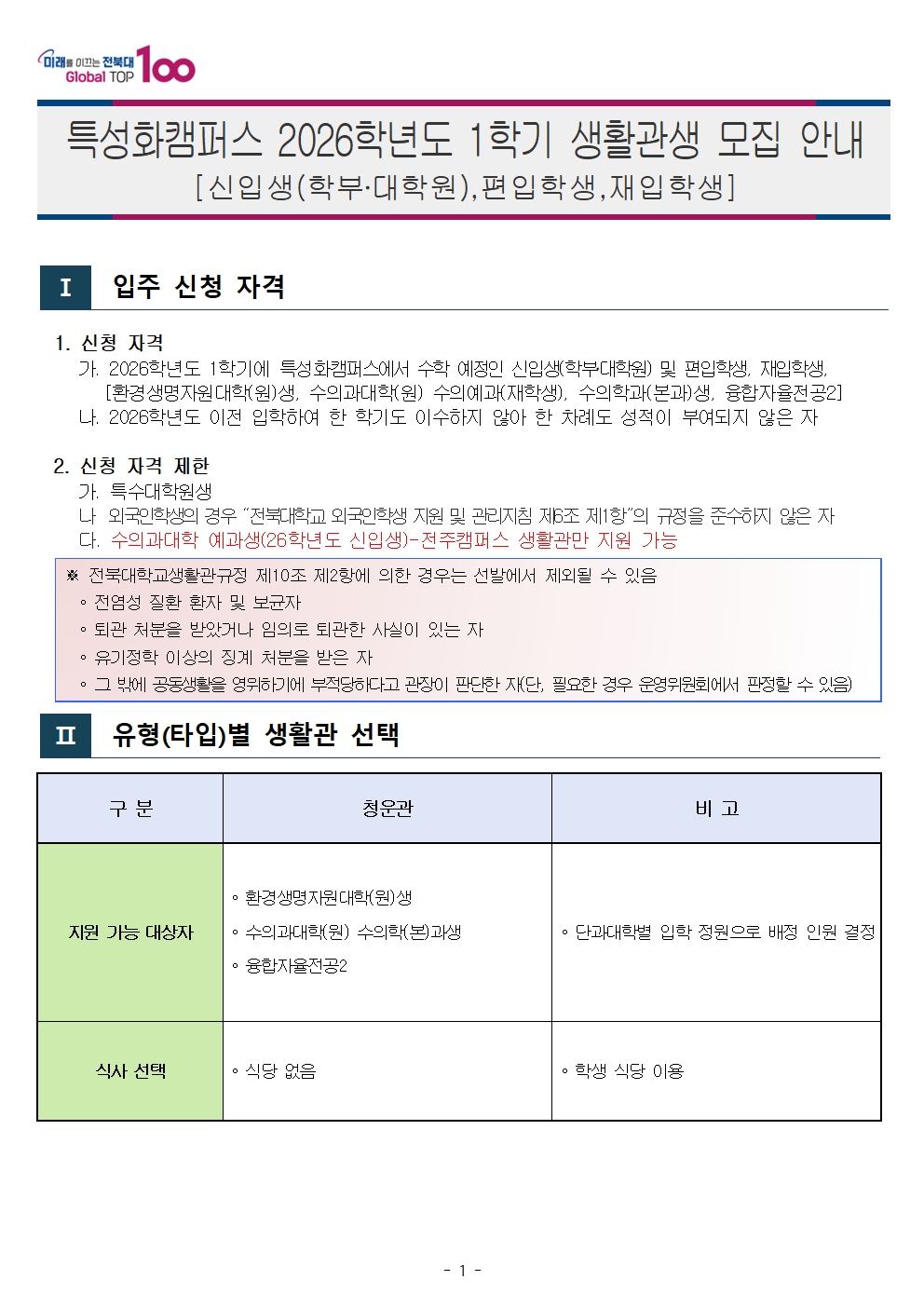 특성화캠퍼스 2026학년도 1학기 생활관생 모집 안내[신입생, 편입학생, 재입학생]