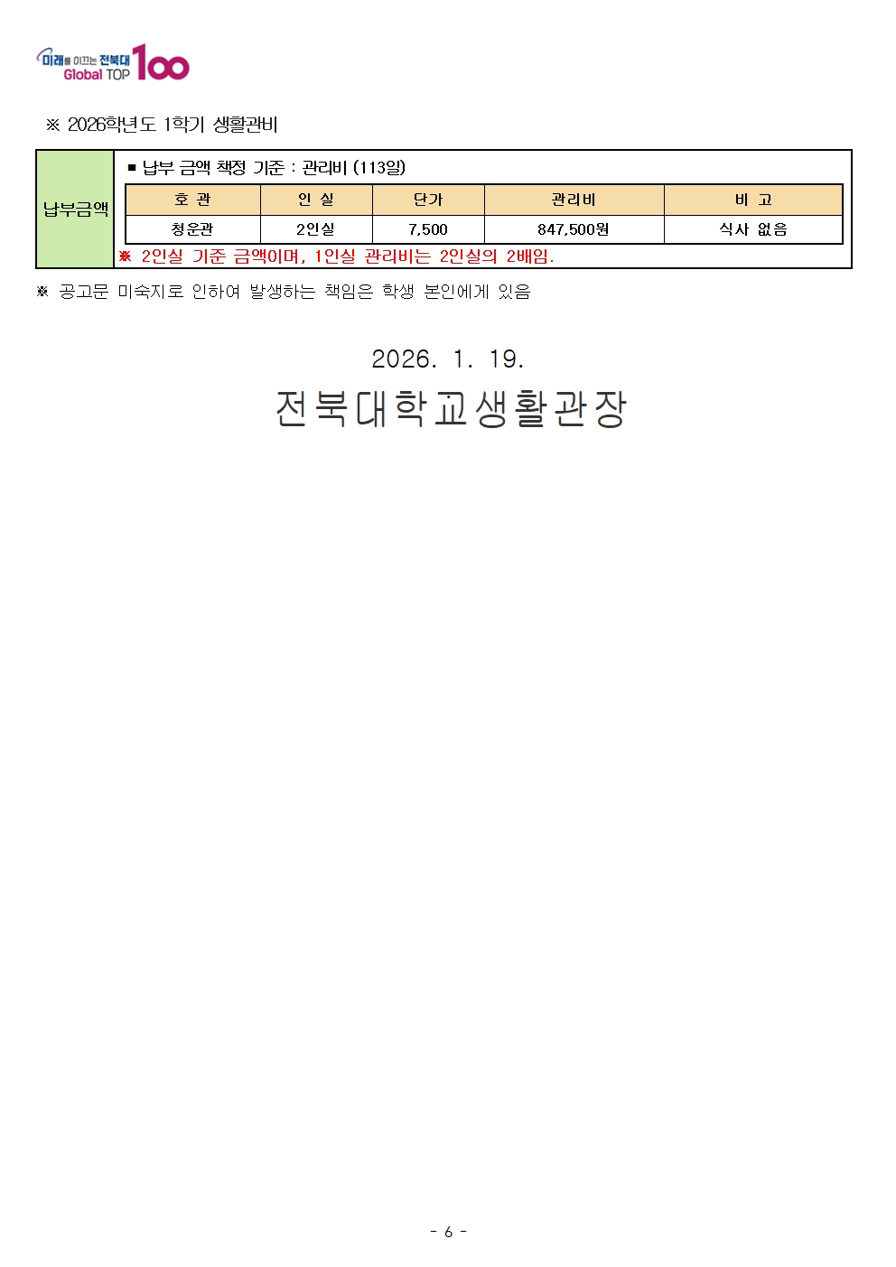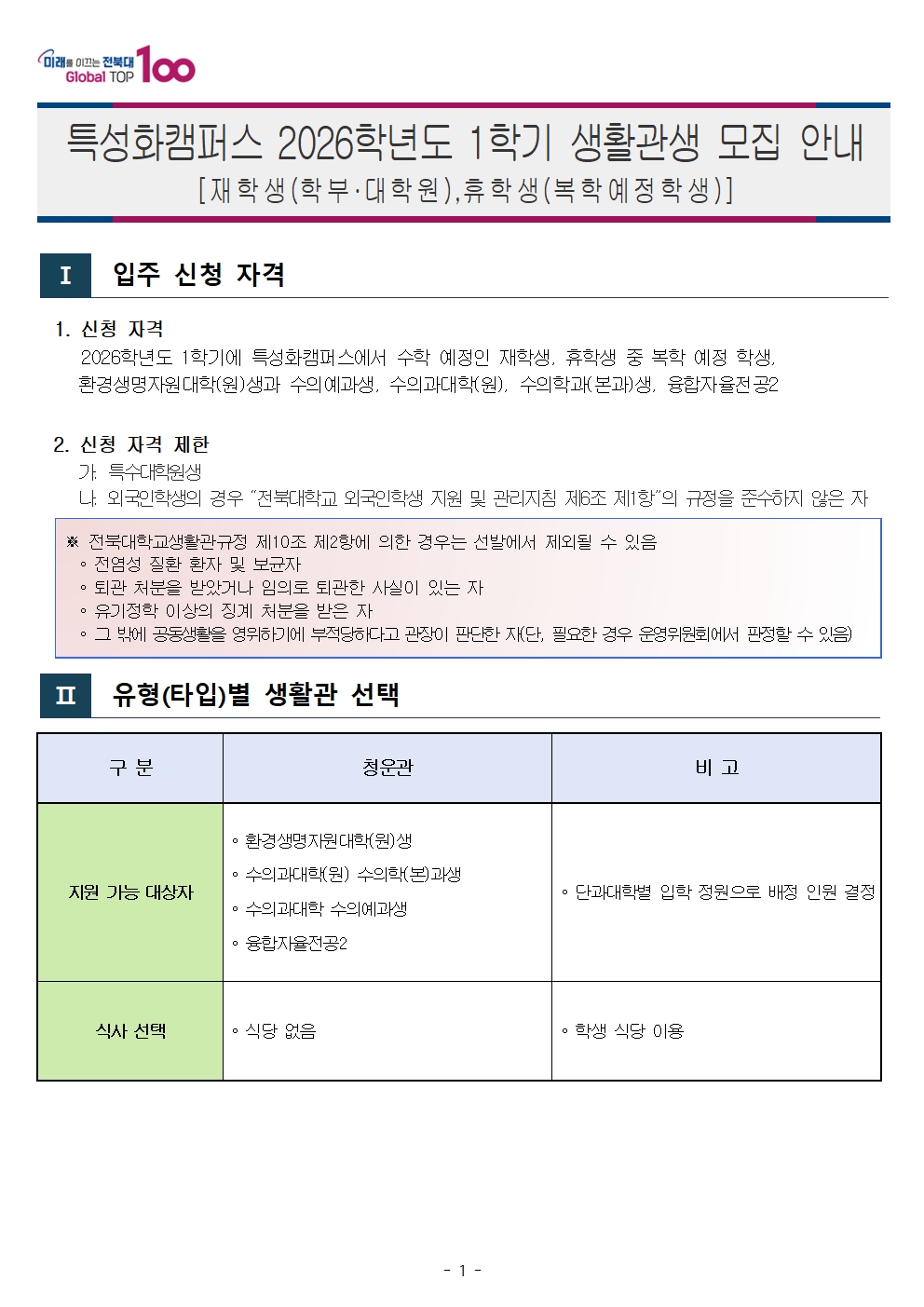 특성화캠퍼스 2026학년도 1학기 생활관생 모집 안내[재학생, 복학예정학생]