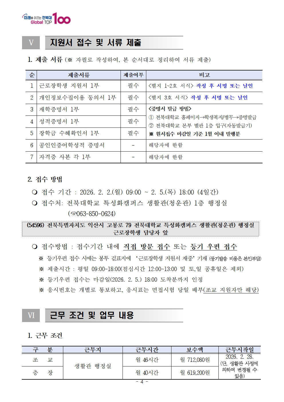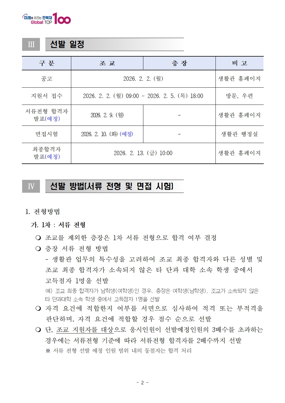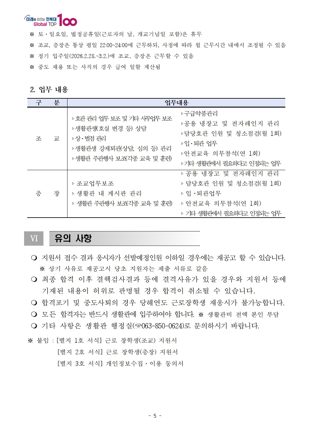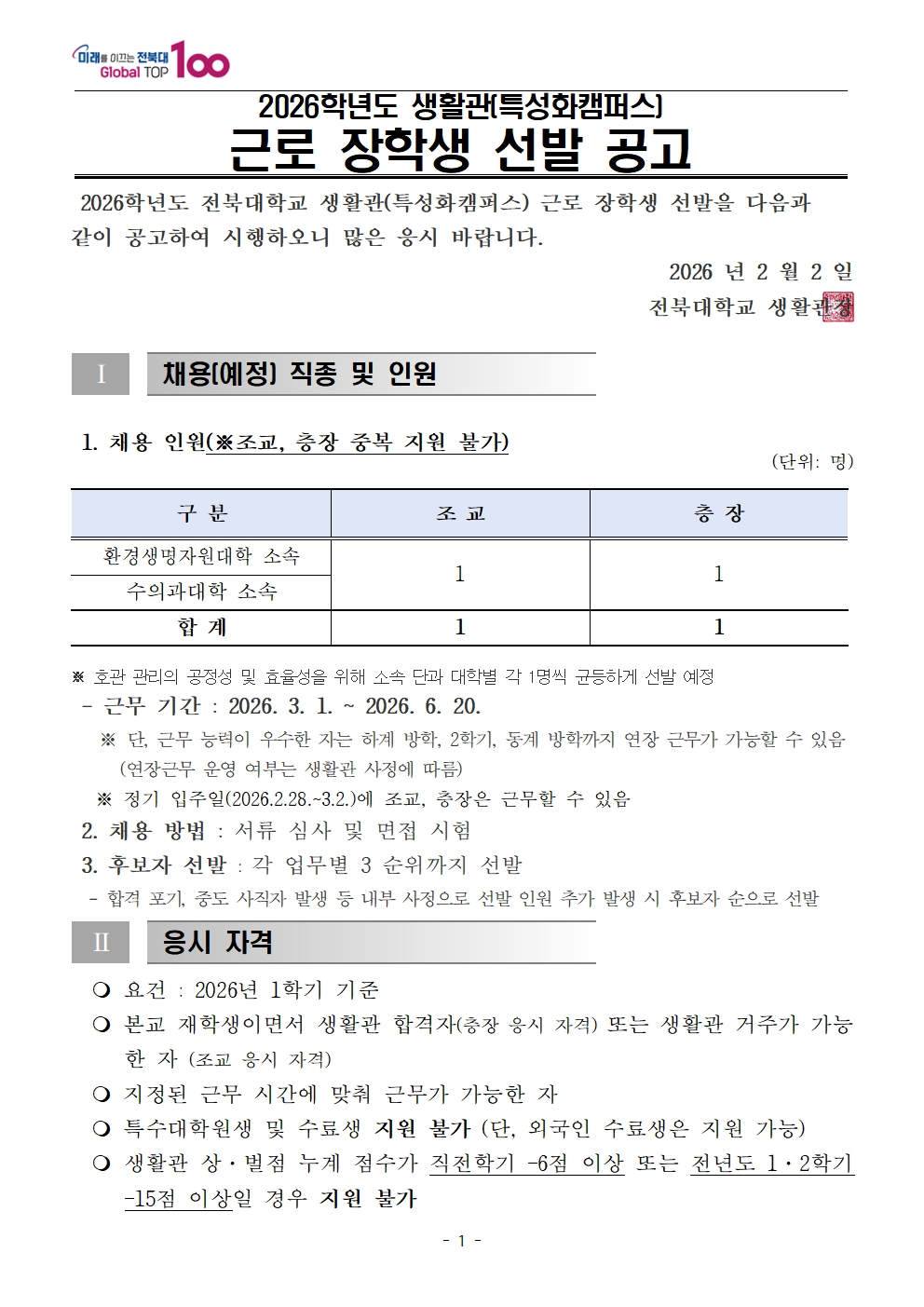 2026학년도 생활관(특성화캠퍼스) 근로 장학생 선발 공고